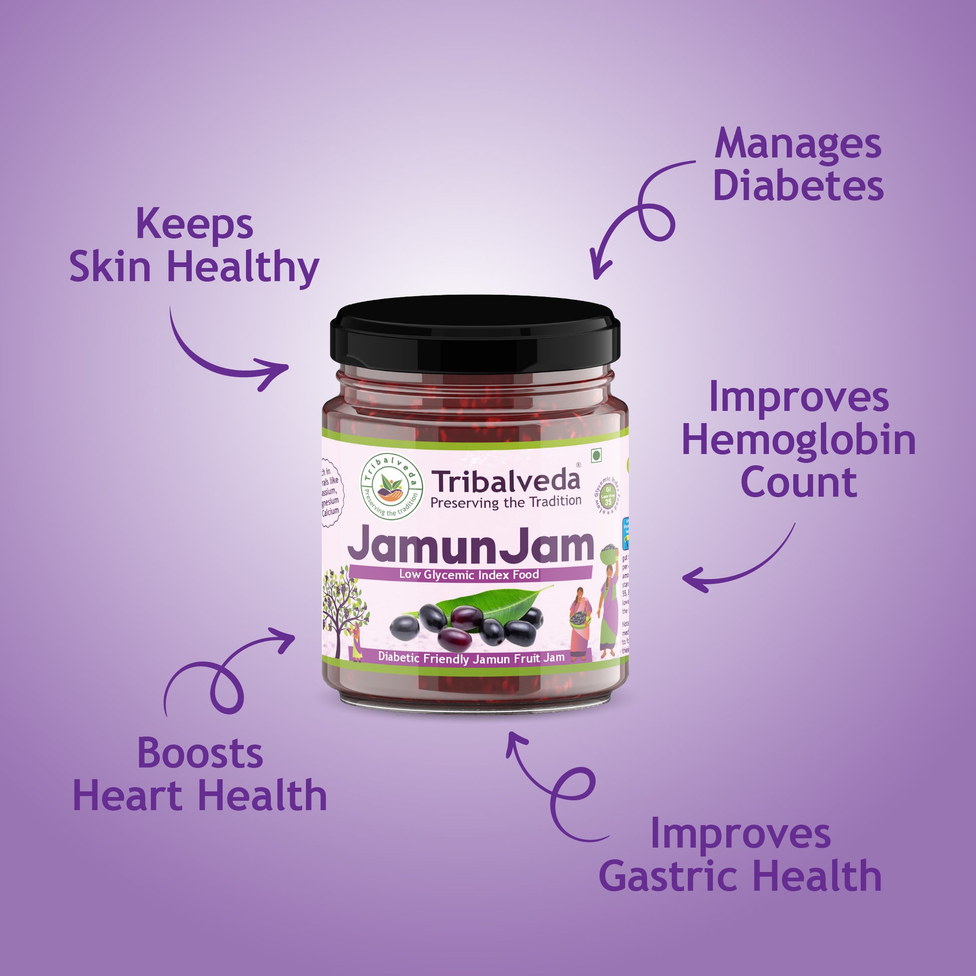 1 Jamun Jam: A diabetic-friendly delight with a low glycemic index, perfect for spreading on bread or rotis. Made from real Jamun, this jam offers a tasty yet healthy snacking option.
