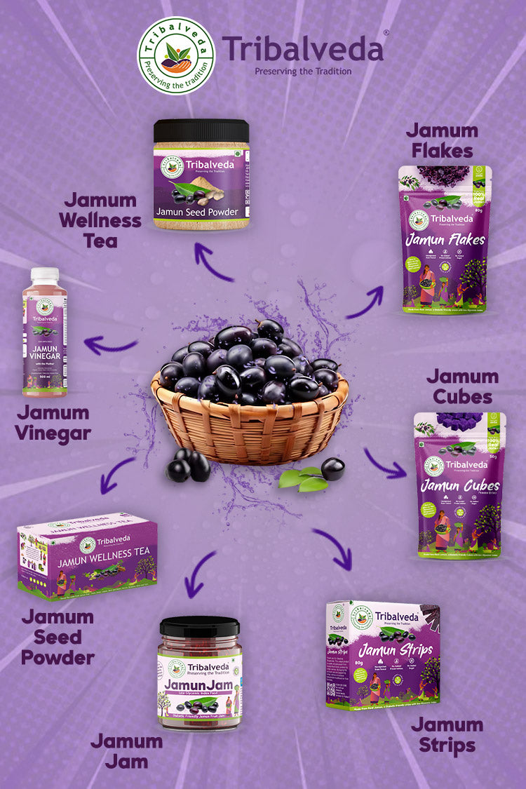 TribalVeda’s Nutrition products are created with the idea of a convenient way to consume Jamun all year round. You can eat them at any time of the day. They are a good replacement for dessert craving post meals or a healthier munchy. You can add Jamun Flakes in curd or buttermilk to get the benefits of Jamun!